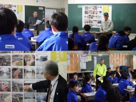 町内会長さんをはじめ地域の皆さんが講師となり、資料をもとに詳しく説明してくださいました。災害を身近に感じるとともにどう備えるかについて、中学生も地域の一員として考える機会になりました。