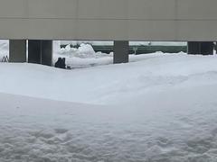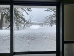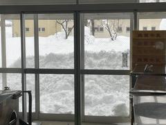 生徒玄関から西、校門方向です。1.5mほどの積雪があります。