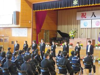 144名の新入生をお迎えしました。大きな返事が体育館に響き渡りました。