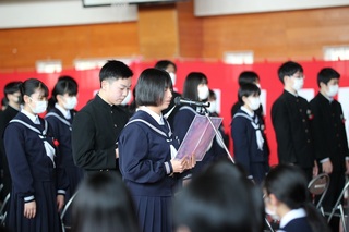 3月5日(土)に第43回卒業式が行われました。昨年度と同様、第1部は在校生と、第2部は保護者とともに行われました。胸を張った堂々とした3年生を見られて、3年間の成長を感じました。これから新たな扉を開いて、それぞれの花を咲かせていくことを職員一同願っています。