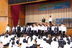 級長・副級長任命式がありました。学級、学年の代表として仲間をリードしていってほしいです。その後、新人各種大会、地区駅伝大会の報告&表彰、科学研究発表会などその他の表彰がありました。